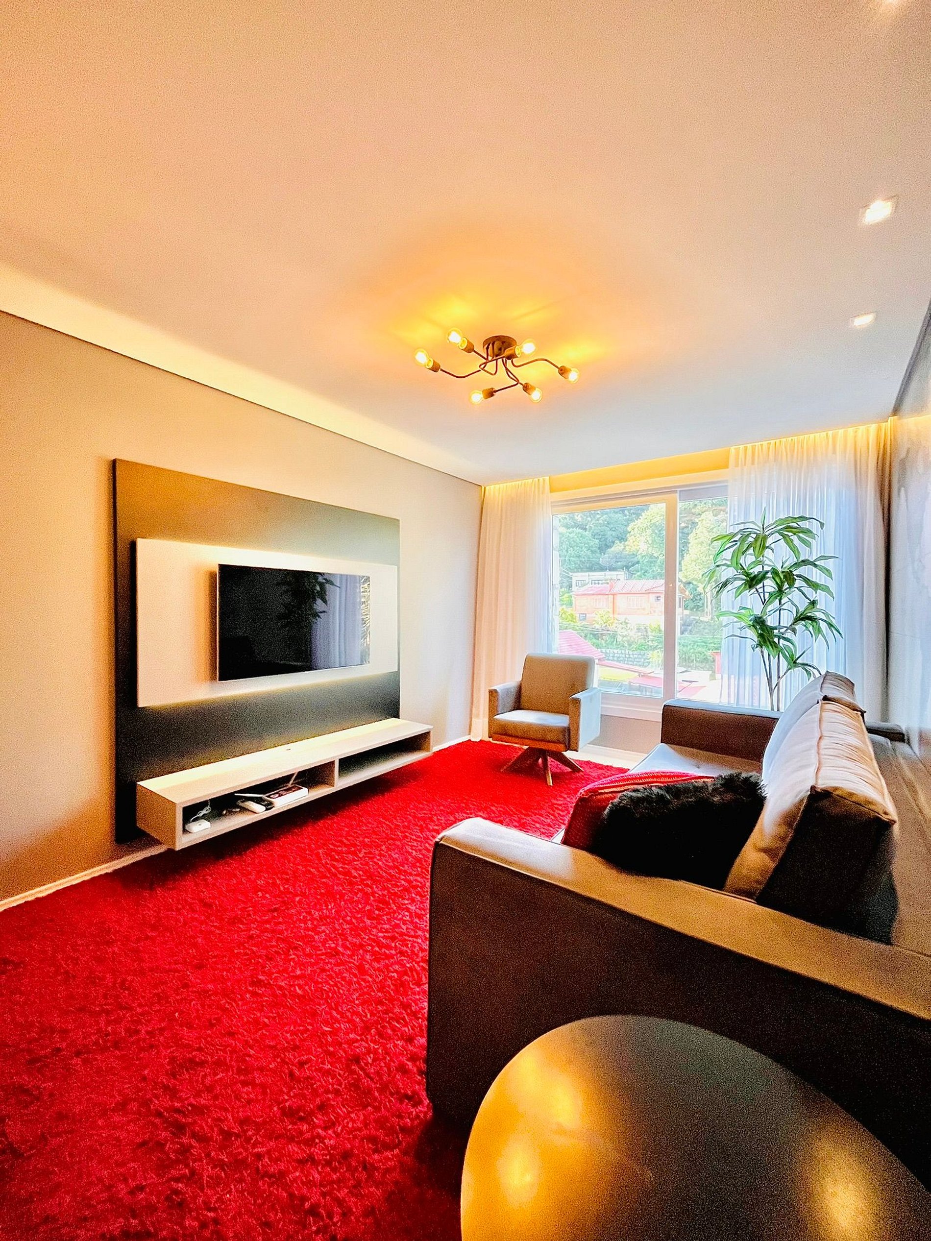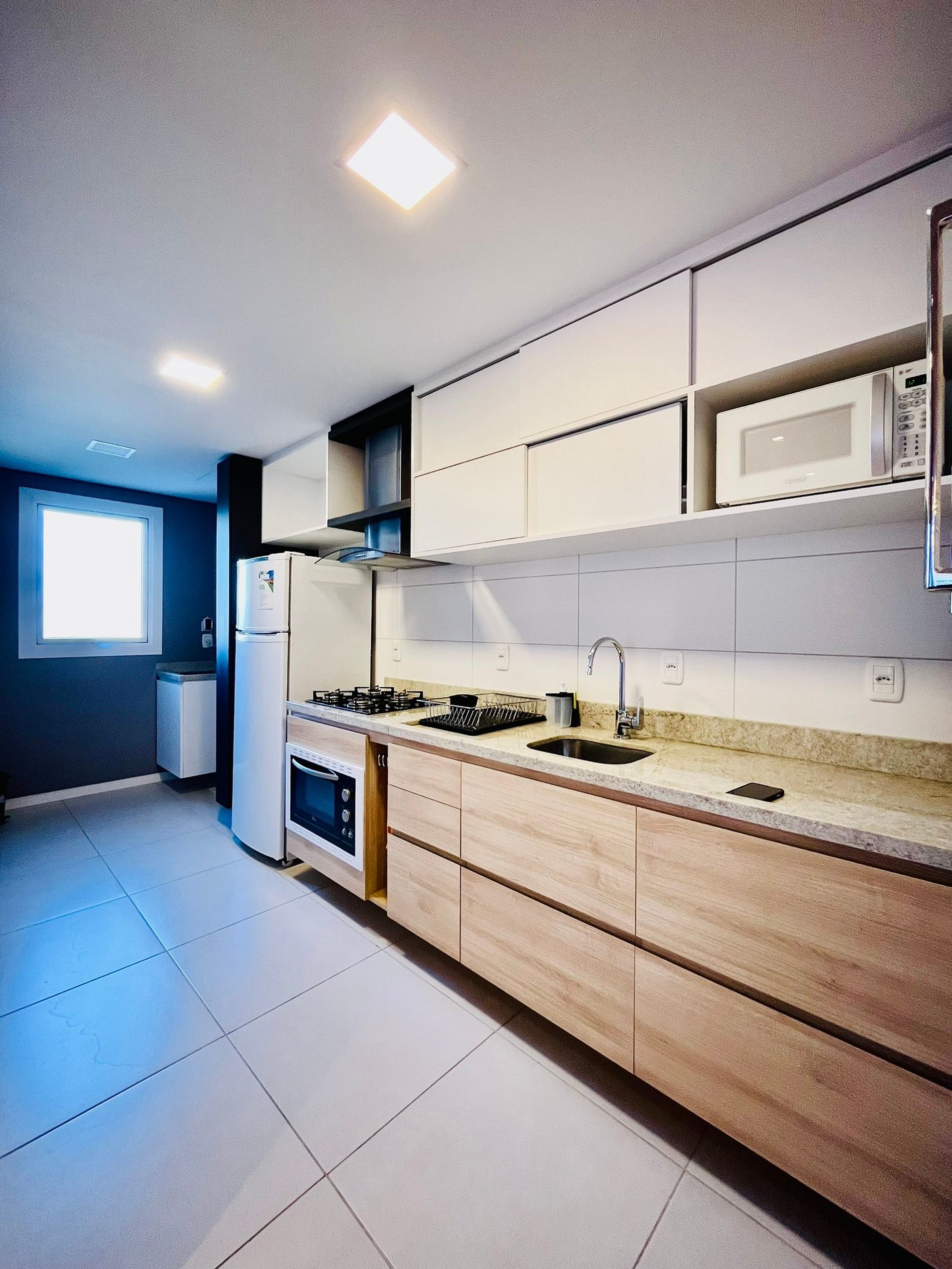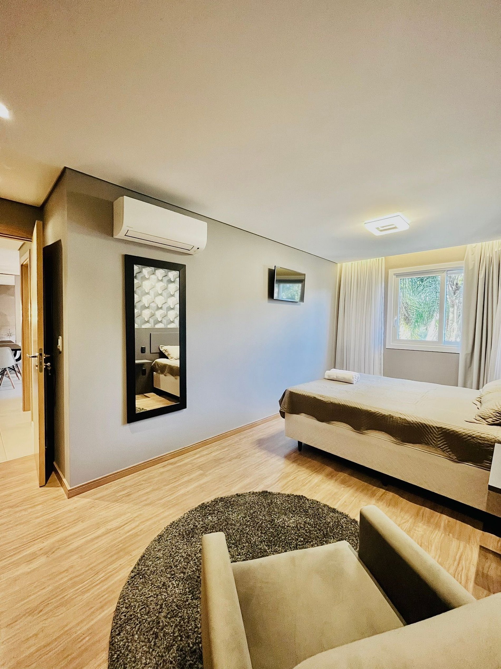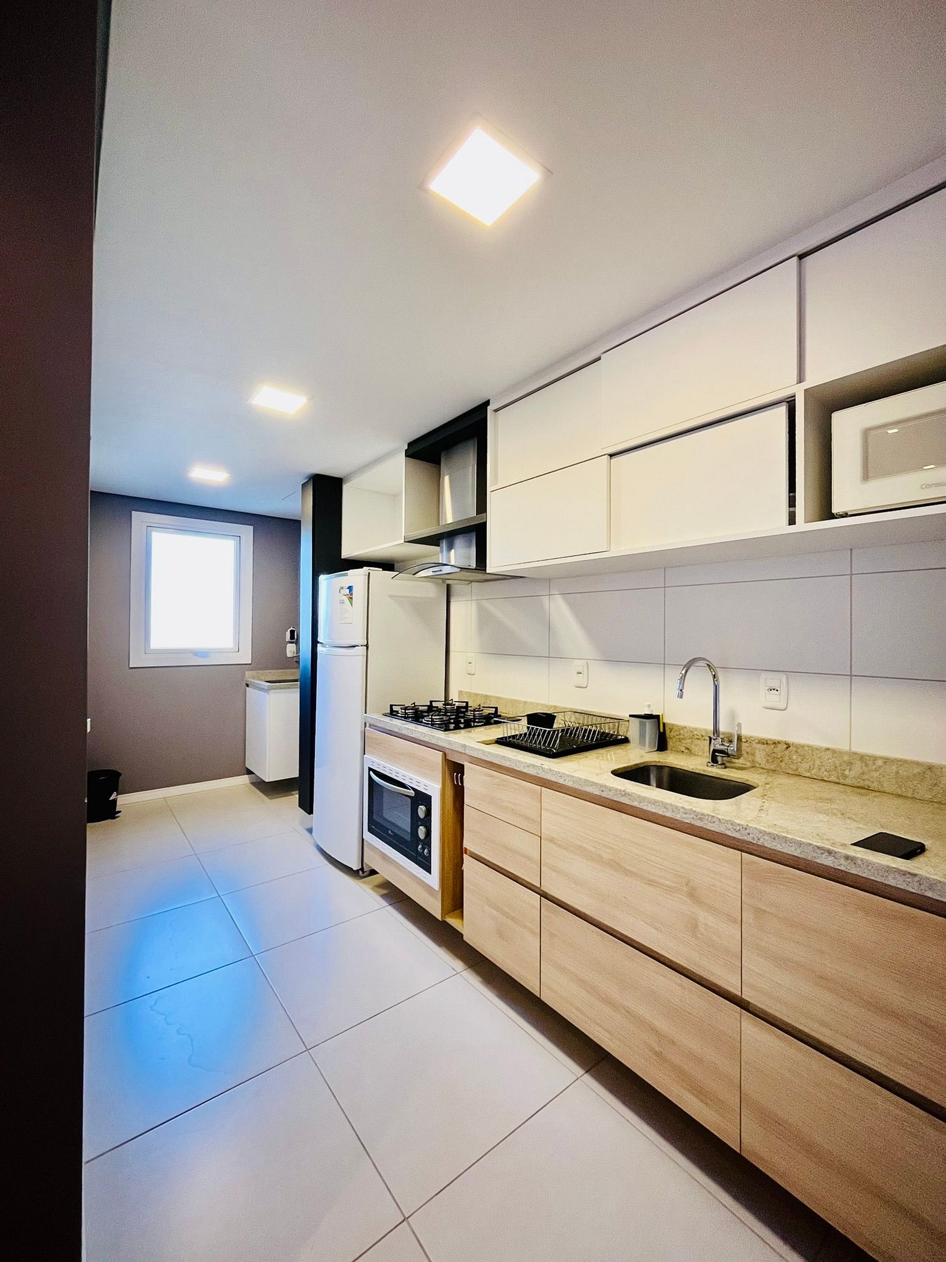 Meu apartamento foi planejado para oferecer o conforto de uma casa com o padrão de um hotel: possui 2 dormitórios, sendo 1 suíte, em 89 m² privativos. O imóvel é finamente mobiliado, com decoração elegante e ambientes amplos, proporcionando à família um local tranquilo para relaxar. A sala é aconchegante e integrada à cozinha completa, criando um espaço perfeito para momentos em família, refeições e descanso após um dia de passeios.